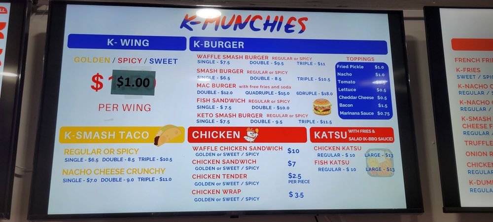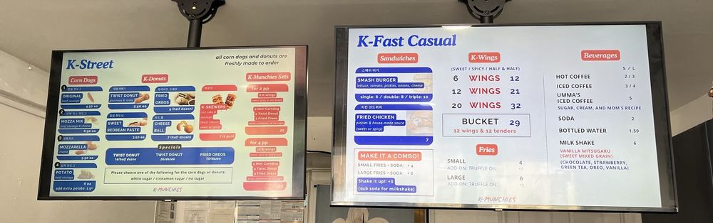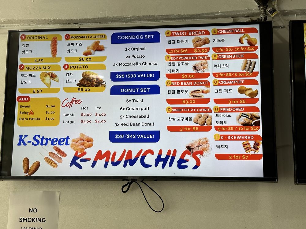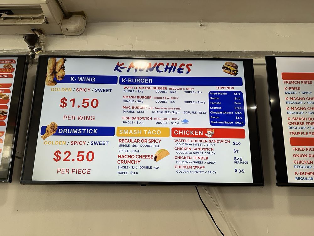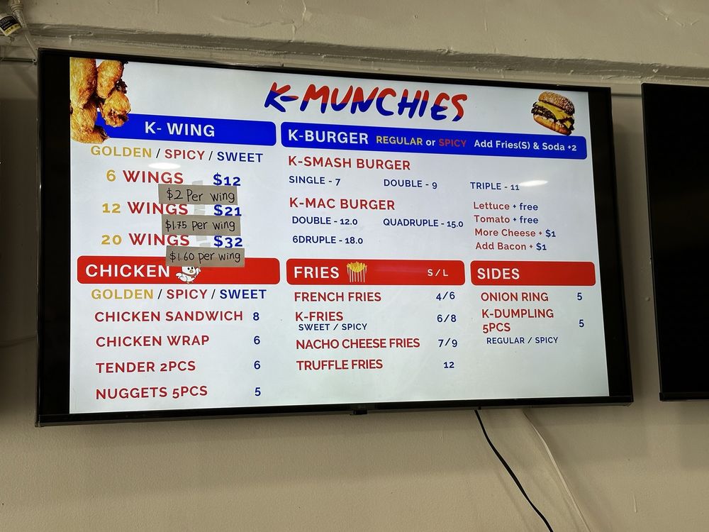 K- Munchies, a Korean fusion restaurant located at 14746 Northern Blvd in New York, offers a unique menu blending Korean flavors with classic American dishes like burgers and chicken wings. The cozy establishment provides a range of amenities including delivery, takeout, reservation options, and even catering services. Customers rave about the Original Corn Dog, KSmash Burger, and Korean-style Fried Chicken, praising the fresh and delicious flavors. The friendly staff and charming ambiance make dining at K- Munchies a delightful experience. With a focus on quality ingredients and innovative recipes, this Asian-owned gem stands out for its mouthwatering dishes and top-notch service. Don't miss out on their signature dishes and delightful treats, a must-visit for foodies in the area.
